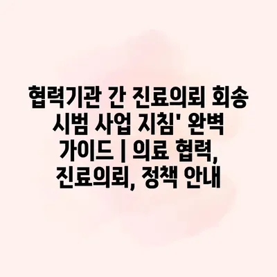 협력기관 간 진료의뢰 회송 시범 사업 방법은 현대 의료 시스템에서 중요한 요소로 자리잡고 있습니다. 이 설명서는 의료 기관 간의 효과적인 협력과 진료의뢰 프로세스를 보다 쉽게… 더 보기 »협력기관 간 진료의뢰 회송 시범 사업 지침’ 완벽 가이드 | 의료 협력, 진료의뢰, 정책 안내
