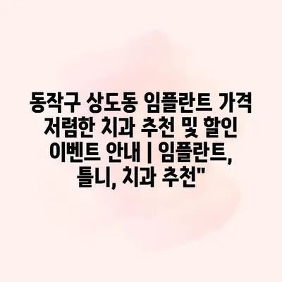 동작구 상도동 임플란트 가격 저렴한 치과 추천 및 할인 이벤트 공지에 대해 알아보겠습니다. 임플란트 치료를 생각하고 계신다면, 가격이 중요한 요소일 것입니다. 상도동에는 합리적인 가격으로 수준… 더 보기 »동작구 상도동 임플란트 가격 저렴한 치과 추천 및 할인 이벤트 안내 | 임플란트, 틀니, 치과 추천”