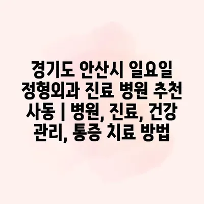 경기도 안산시 일요일 정형외과 진료 병원 추천 사동에서 건강 관리와 통증 치료를 받는 것은 매우 중요합니다. 정형외과는 골절, 염좌, 관절 통증 등 다양한 근골격계 질환을… 더 보기 »경기도 안산시 일요일 정형외과 진료 병원 추천 사동 | 병원, 진료, 건강 관리, 통증 치료 방법