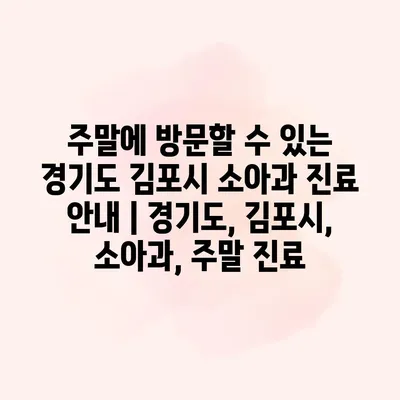 주말에 방문할 수 있는 경기도 김포시 소아과 진료 안내 | 경기도, 김포시, 소아과, 주말 진료