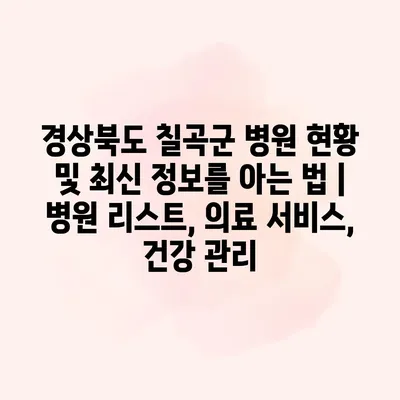 경상북도 칠곡군 병원 현황 및 최신 정보를 아는 법 | 병원 리스트, 의료 서비스, 건강 관리