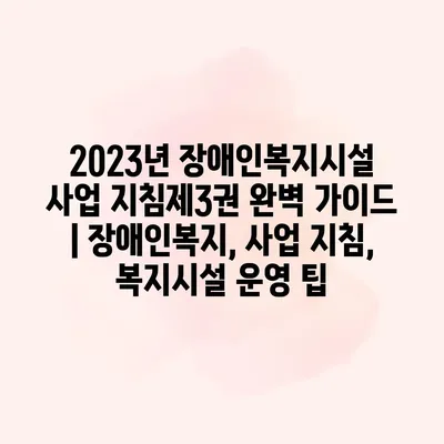 2023년 장애인복지시설 사업 방법제3권 완벽 설명서는 장애인복지 분야의 운영과 관리를 보다 효율적으로 수행하기 위한 필수 자료입니다. 본 설명서를 통해 다양한 사업 방법과 실질적인 복지시설 운영… 더 보기 »2023년 장애인복지시설 사업 지침제3권 완벽 가이드 | 장애인복지, 사업 지침, 복지시설 운영 팁