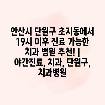 안산시 단원구 초지동에서 19시 이후 진료 가능한 치과 병원을 찾고 계신가요? 가끔씩 치아에 문제가 생길 때 일상적인 근무시간 안에 치료받는 것이 어렵습니다. 이러한 경우 야간… 더 보기 »안산시 단원구 초지동에서 19시 이후 진료 가능한 치과 병원 추천! | 야간진료, 치과, 단원구, 치과병원