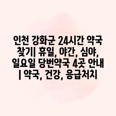 인천 강화군 24시간 약국 찾기| 휴일, 야간, 심야, 일요일 당번약국 4곳 공지 | 약국, 건강, 응급처치 갑작스러운 질병이나 부상이 발생할 때, 가까이 위치한 24시간 약국을… 더 보기 »인천 강화군 24시간 약국 찾기| 휴일, 야간, 심야, 일요일 당번약국 4곳 안내 | 약국, 건강, 응급처치