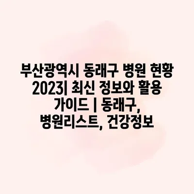부산광역시 동래구 병원 현황 2023| 최신 정보와 활용 설명서 | 동래구, 병원리스트, 건강정보 동래구는 부산의 대표적인 주거지역 중 하나로, 다양한 병원과 의료기관이 있어 주민들의 건강을… 더 보기 »부산광역시 동래구 병원 현황 2023| 최신 정보와 활용 가이드 | 동래구, 병원리스트, 건강정보