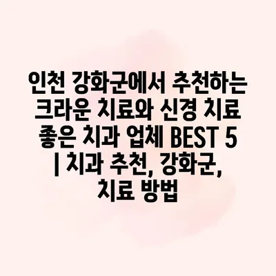 인천 강화군에서 추천하는 크라운 치료와 신경 치료 좋은 치과 업체 BEST 5를 소개합니다. 치아 문제가 발생했을 때, 믿을 수 있는 치과를 찾는 것은 매우 중요합니다.… 더 보기 »인천 강화군에서 추천하는 크라운 치료와 신경 치료 좋은 치과 업체 BEST 5 | 치과 추천, 강화군, 치료 방법