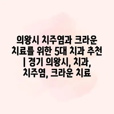 의왕시 치주염과 크라운 치료를 위한 5대 치과 추천 | 경기 의왕시, 치과, 치주염, 크라운 치료 치주염은 많은 사람들이 경험하는 구강 건강 문제 중 하나로, 적절한… 더 보기 »의왕시 치주염과 크라운 치료를 위한 5대 치과 추천 | 경기 의왕시, 치과, 치주염, 크라운 치료