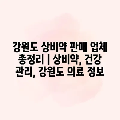 강원도 상비약 판매 업체 총정리 | 상비약, 건강 관리, 강원도 의료 정보