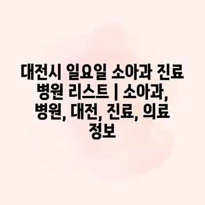 대전시 일요일 소아과 진료 병원 리스트 | 소아과, 병원, 대전, 진료, 의료 정보