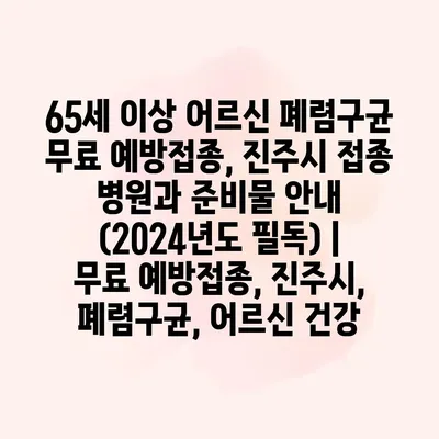 65세 이상 어르신을 대상으로 한 폐렴구균 무료 예방접종이 2024년도에 시행됩니다. 이번 예방접종은 어르신들의 건강을 지키기 위해 매우 중요하며, 폐렴과 같은 호흡기 질환으로부터 보호하는 데 큰… 더 보기 »65세 이상 어르신 폐렴구균 무료 예방접종, 진주시 접종 병원과 준비물 안내 (2024년도 필독) | 무료 예방접종, 진주시, 폐렴구균, 어르신 건강