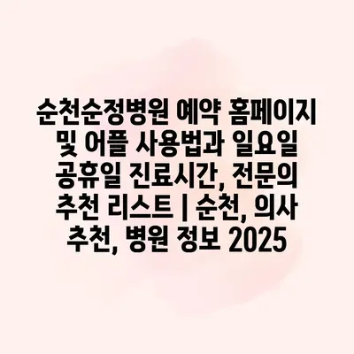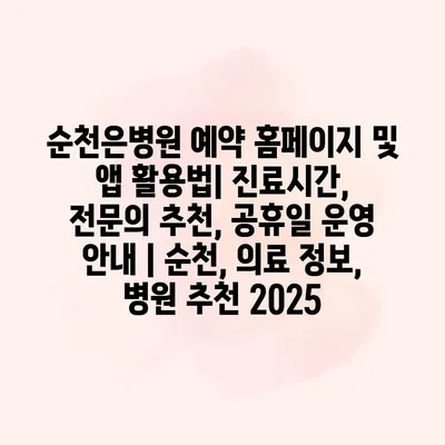 순천은병원 예약 홈페이지 및 앱 활용법에 대해 알아보겠습니다. 순천은병원은 간편한 예약 시스템을 알려드려 사용자들이 손쉽게 진료를 예약할 수 있습니다. 홈페이지와 앱 모두 직관적인 인터페이스로 설계되어… 더 보기 »순천은병원 예약 홈페이지 및 앱 활용법| 진료시간, 전문의 추천, 공휴일 운영 안내 | 순천, 의료 정보, 병원 추천 2025