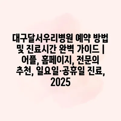 대구달서우리병원 예약 방법 및 진료시간 완벽 설명서로 여러분을 공지합니다. 병원 예약은 어플과 홈페이지를 통해 간편하게 할 수 있습니다. 어플은 사용자의 편의를 고려하여 직관적인 UI로 설계되어… 더 보기 »대구달서우리병원 예약 방법 및 진료시간 완벽 가이드 | 어플, 홈페이지, 전문의 추천, 일요일·공휴일 진료, 2025
