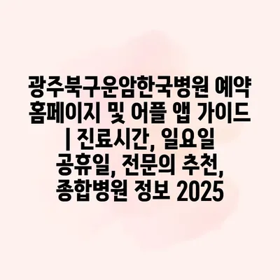 광주북구운암한국병원 예약 홈페이지 및 어플 앱 설명서 | 진료시간, 일요일 공휴일, 전연락 추천, 종합병원 정보 2025 광주북구운암한국병원은 환자의 편의를 위해 온라인 예약 시스템을 운영하고 있습니다.… 더 보기 »광주북구운암한국병원 예약 홈페이지 및 어플 앱 가이드 | 진료시간, 일요일 공휴일, 전문의 추천, 종합병원 정보 2025
