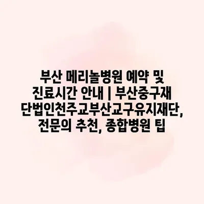 부산 메리놀병원은 부산 중구에 위치한 종합병원으로, 전문적인 의료 서비스를 알려알려드리겠습니다. 이 병원은 부산중구재단법인천주교부산교구유지재단에서 운영하는 기관으로, 지역 사회에 필수적인 역할을 하고 있습니다. 방문을 원하신다면 미리 예약하는… 더 보기 »부산 메리놀병원 예약 및 진료시간 안내 | 부산중구재단법인천주교부산교구유지재단, 전문의 추천, 종합병원 팁