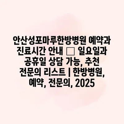 안산성포마루한방병원 예약과 진료시간 공지 – 일요일과 공휴일 상담 가능, 추천 전연락 리스트 | 한방병원, 예약, 전연락, 2025 안산성포마루한방병원은 편리한 예약 시스템과 진료시간으로 환자에게 최상의 서비스를… 더 보기 »안산성포마루한방병원 예약과 진료시간 안내 – 일요일과 공휴일 상담 가능, 추천 전문의 리스트 | 한방병원, 예약, 전문의, 2025