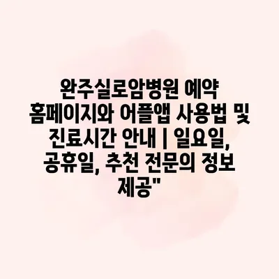 완주실로암병원 예약 홈페이지와 어플앱 사용법 및 진료시간 공지 | 일요일, 공휴일, 추천 전연락 정보 제공 완주실로암병원의 예약 시스템은 매우 간편합니다. 홈페이지에 접속하여 필요한 내용을 쉽게… 더 보기 »완주실로암병원 예약 홈페이지와 어플앱 사용법 및 진료시간 안내 | 일요일, 공휴일, 추천 전문의 정보 제공”