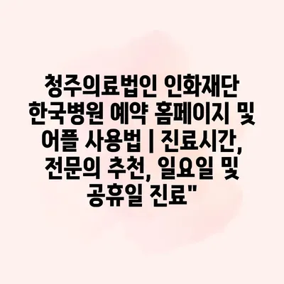 청주의료법인 인화재단 한국병원 예약 홈페이지 및 어플 사용법 | 진료시간, 전문의 추천, 일요일 및 공휴일 진료”