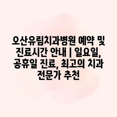오산유림치과병원 예약 및 진료시간 안내 | 일요일, 공휴일 진료, 최고의 치과 전문가 추천