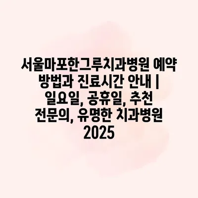 서울마포한그루치과병원 예약 방법과 진료시간 안내 | 일요일, 공휴일, 추천 전문의, 유명한 치과병원 2025