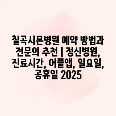 칠곡시몬병원 예약 방법과 전문의 추천 | 정신병원, 진료시간, 어플앱, 일요일, 공휴일 2025