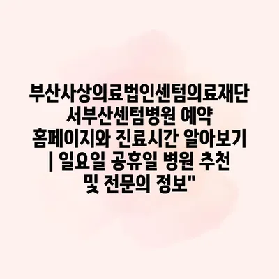 부산사상의료법인센텀의료재단 서부산센텀병원 예약 홈페이지와 진료시간 알아보기 | 일요일 공휴일 병원 추천 및 전문의 정보”