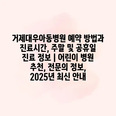 거제대우아동병원은 소아 전문 의료 기관으로, 어린이의 건강을 최우선으로 생각합니다. 예약 방법은 간편합니다. 공식 웹사이트나 ☎ 전화로 직접 예약이 가능하며, 인터넷 예약도 지원하여 편리하게 이용할 수… 더 보기 »거제대우아동병원 예약 방법과 진료시간, 주말 및 공휴일 진료 정보 | 어린이 병원 추천, 전문의 정보, 2025년 최신 안내