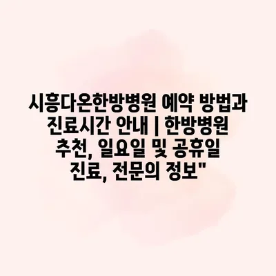 시흥다온한방병원 예약 방법과 진료시간 공지 | 한방병원 추천, 일요일 및 공휴일 진료, 전연락 정보 시흥다온한방병원은 환자 중심의 진료를 제공하는 병원으로, 예약 방법이 간편하여 많은 환자들에게… 더 보기 »시흥다온한방병원 예약 방법과 진료시간 안내 | 한방병원 추천, 일요일 및 공휴일 진료, 전문의 정보”
