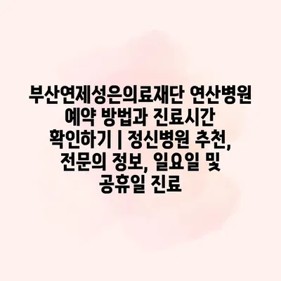 부산연제성은의료재단 연산병원은 정신건강을 위한 전문 병원으로, 체계적인 치료를 알려알려드리겠습니다. 예약은 전화나 병원 공식 웹사이트를 통해 간편하게 할 수 있습니다. 전화로는 시니어 상담원이 친절하게 공지해 주며,… 더 보기 »부산연제성은의료재단 연산병원 예약 방법과 진료시간 확인하기 | 정신병원 추천, 전문의 정보, 일요일 및 공휴일 진료