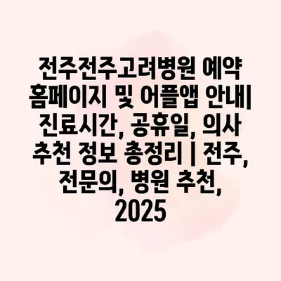전주전주고려병원 예약 홈페이지 및 어플앱 안내| 진료시간, 공휴일, 의사 추천 정보 총정리 | 전주, 전문의, 병원 추천, 2025