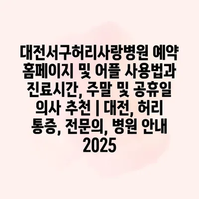 대전서구허리사랑병원 예약 홈페이지 및 어플 사용법과 진료시간, 주말 및 공휴일 의사 추천 | 대전, 허리 통증, 전문의, 병원 안내 2025