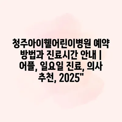 청주아이웰어린이병원 예약 방법과 진료시간 안내 | 어플, 일요일 진료, 의사 추천, 2025″