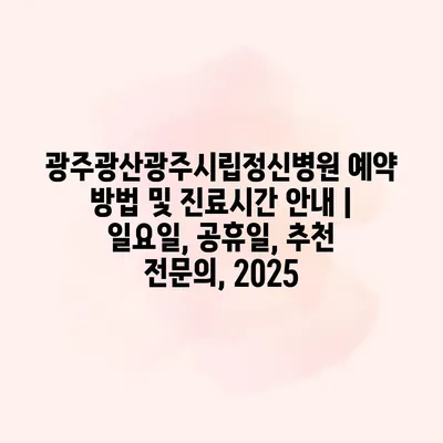 광주광산광주시립정신병원 예약 방법 및 진료시간 안내 | 일요일, 공휴일, 추천 전문의, 2025