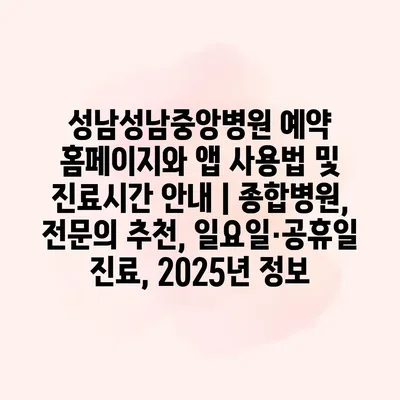 성남성남중앙병원 예약 홈페이지와 앱 사용법 및 진료시간 안내 | 종합병원, 전문의 추천, 일요일·공휴일 진료, 2025년 정보