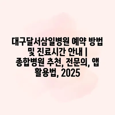 대구달서삼일병원 예약 방법 및 진료시간 안내 | 종합병원 추천, 전문의, 앱 활용법, 2025