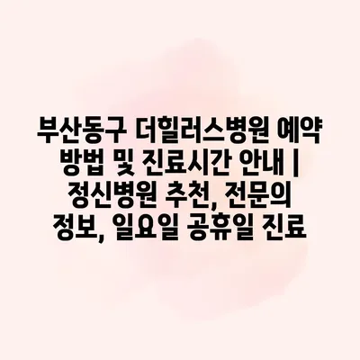 부산동구 더힐러스병원 예약 방법 및 진료시간 안내 | 정신병원 추천, 전문의 정보, 일요일 공휴일 진료