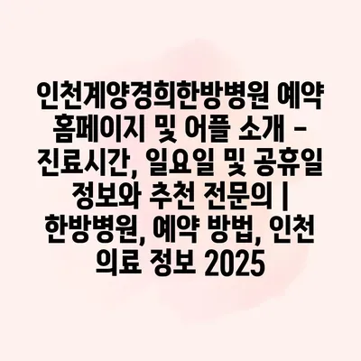 인천계양경희한방병원 예약 홈페이지 및 어플 소개 – 진료시간, 일요일 및 공휴일 정보와 추천 전문의 | 한방병원, 예약 방법, 인천 의료 정보 2025