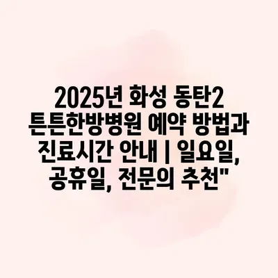 2025년 화성 동탄2 튼튼한방병원 예약 방법과 진료시간 안내 | 일요일, 공휴일, 전문의 추천”