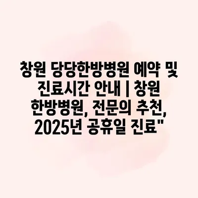 창원 당당한방병원 예약 및 진료시간 안내 | 창원 한방병원, 전문의 추천, 2025년 공휴일 진료”