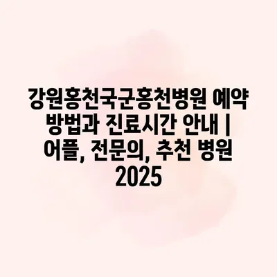 강원홍천국군홍천병원 예약 방법과 진료시간 안내 | 어플, 전문의, 추천 병원 2025
