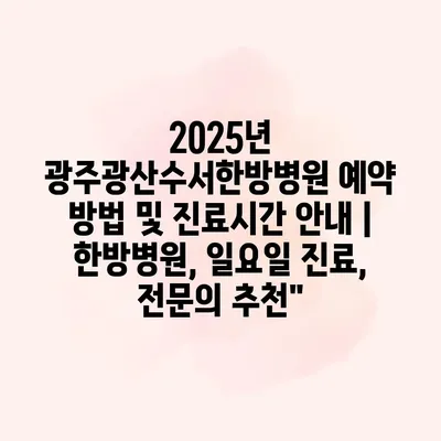 2025년 광주광산수서한방병원 예약 방법 및 진료시간 공지 | 한방병원, 일요일 진료, 전연락 추천 광주광산수서한방병원은 한방 진료를 전문으로 하며, 건강 문제를 해결하기 위해 꾸준히 노력하고 있습니다.… 더 보기 »2025년 광주광산수서한방병원 예약 방법 및 진료시간 안내 | 한방병원, 일요일 진료, 전문의 추천”