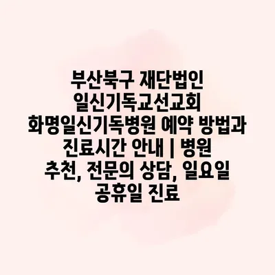 부산북구 재단법인 일신기독교선교회 화명일신기독병원의 예약 방법은 매우 간편합니다. 환자는 병원 홈페이지를 통해 온라인 예약을 하거나, 전화로 직접 상담 후 예약 할 수 있습니다. 병원 전화번호는… 더 보기 »부산북구 재단법인 일신기독교선교회 화명일신기독병원 예약 방법과 진료시간 안내 | 병원 추천, 전문의 상담, 일요일 공휴일 진료