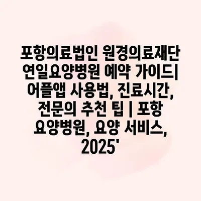 포항의료법인 원경의료재단 연일요양병원 예약 설명서에 대해 공지합니다. 이 병원은 노인 환자분들을 위한 요양 서비스를 알려알려드리겠습니다. 예약은 간편하게 어플 앱을 통해 할 수 있으며, 사용법은 매우… 더 보기 »포항의료법인 원경의료재단 연일요양병원 예약 가이드| 어플앱 사용법, 진료시간, 전문의 추천 팁 | 포항 요양병원, 요양 서비스, 2025′