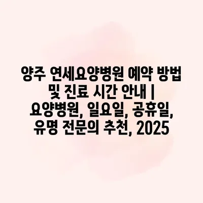 양주 연세요양병원 예약 방법 및 진료 시간 공지 | 요양병원, 일요일, 공휴일, 유명 전연락 추천, 2025 양주 연세요양병원은 환자 중심의 진료를 제공하는 곳으로, 온라인 예약… 더 보기 »양주 연세요양병원 예약 방법 및 진료 시간 안내 | 요양병원, 일요일, 공휴일, 유명 전문의 추천, 2025