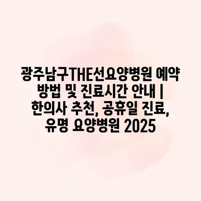 광주남구THE선요양병원 예약 방법 및 진료시간 안내 | 한의사 추천, 공휴일 진료, 유명 요양병원 2025