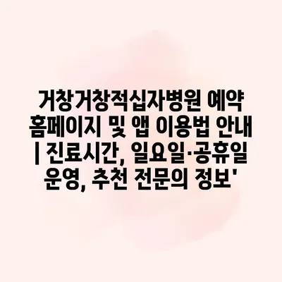 거창거창적십자병원 예약 홈페이지 및 앱 이용법 공지 | 진료시간, 일요일·공휴일 운영, 추천 전연락 정보 거창거창적십자병원은 보다 나은 의료 서비스를 제공하기 위해 예약 홈페이지와 앱을 운영하고… 더 보기 »거창거창적십자병원 예약 홈페이지 및 앱 이용법 안내 | 진료시간, 일요일·공휴일 운영, 추천 전문의 정보’