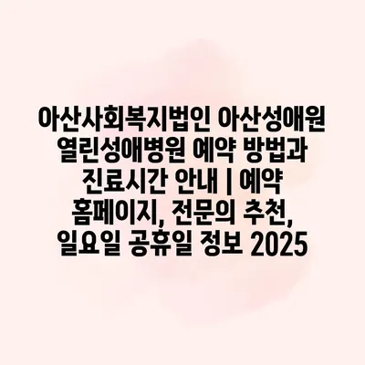 아산사회복지법인 아산성애원 열린성애병원 예약 방법과 진료시간 공지 열린성애병원은 각종 진료를 위한 예약이 필수입니다. 예약은 공식 예약 홈페이지를 통해 쉽게 할 수 있으며, 필요한 내용을 입력하면… 더 보기 »아산사회복지법인 아산성애원 열린성애병원 예약 방법과 진료시간 안내 | 예약 홈페이지, 전문의 추천, 일요일 공휴일 정보 2025