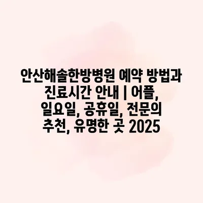 안산해솔한방병원 예약 방법과 진료시간 공지 | 어플, 일요일, 공휴일, 전연락 추천, 유명한 곳 2025 안산해솔한방병원은 환자에게 정성을 다하는 한방 치료를 제공하는 곳입니다. 예약은 간단한 방법으로,… 더 보기 »안산해솔한방병원 예약 방법과 진료시간 안내 | 어플, 일요일, 공휴일, 전문의 추천, 유명한 곳 2025