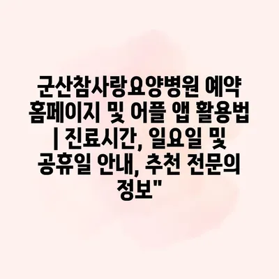군산참사랑요양병원 예약 홈페이지 및 어플 앱 활용법 | 진료시간, 일요일 및 공휴일 공지, 추천 전연락 정보에 대해 알아보겠습니다. 군산참사랑요양병원의 예약 시스템은 간편하게 이용할 수 있으며,… 더 보기 »군산참사랑요양병원 예약 홈페이지 및 어플 앱 활용법 | 진료시간, 일요일 및 공휴일 안내, 추천 전문의 정보”