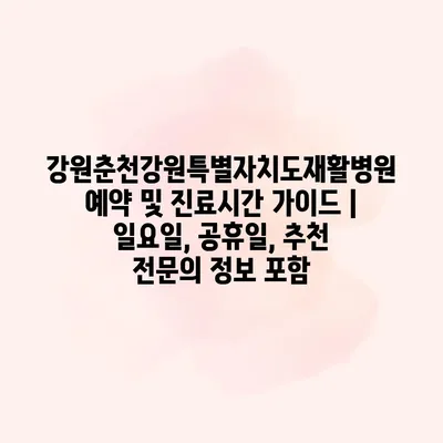 강원춘천강원특별자치도재활병원 예약 및 진료시간 설명서 | 일요일, 공휴일, 추천 전연락 정보 포함 이 병원은 재활치료와 관련된 전문성을 갖춘 기관으로, 다양한 치료를 제공하고 있습니다. 예약은 전화나… 더 보기 »강원춘천강원특별자치도재활병원 예약 및 진료시간 가이드 | 일요일, 공휴일, 추천 전문의 정보 포함
