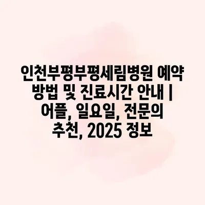 인천부평부평세림병원 예약 방법 및 진료시간 공지에 대해 알아보겠습니다. 병원 예약은 주로 어플을 통해 진행할 수 있으며, 스마트폰에서 쉽게 다운로드하여 사용할 수 있습니다. 해당 어플에서는 병원… 더 보기 »인천부평부평세림병원 예약 방법 및 진료시간 안내 | 어플, 일요일, 전문의 추천, 2025 정보